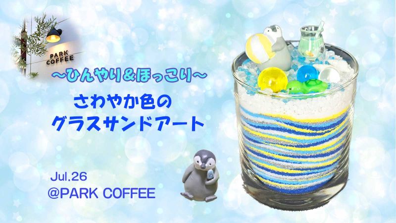 さわやかカラーのかわいいグラスサンドアートを作っていただきました。
